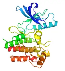MuSK (for Muscle-Specific Kinase)[1] is a receptor tyrosine kinase required for the formation and maintenance of the neuromuscular junction.[2] It is activated by a nerve-derived proteoglycan called agrin,[3] which is similarly also required for neuromuscular junction formation.[4]