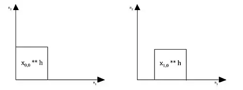 In order to visualize the overlap-add method more clearly, the following illustrations examine the method graphically. Assume that the input has a square region support of length N in both vertical and horizontal directions as shown in the figure below. It is then broken up into four smaller segments in such a way that it is now composed of four smaller squares. Each block of the aggregate signal has dimensions .