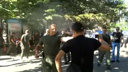 Municipal Guard members used tear gas and rubber batons to attack journalists. As a result, two journalists from the Public Priboy newspaper, Vitaly Tkachenko and Miroslav Bekchiv, as well as the journalist of the "Unsolved Crimes" newspaper Konstantin Slobodyanyuk were injured. Bekchiv was hospitalized with a traumatic brain injury, burns on the face and signs of strangulation.[29]