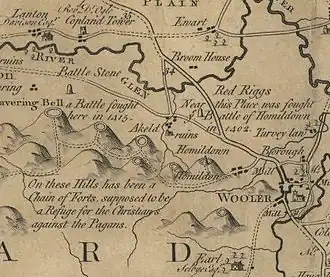 A detail from Armstrong's Map of Northumberland (1769) showing Humbleton (Homildon) Hill