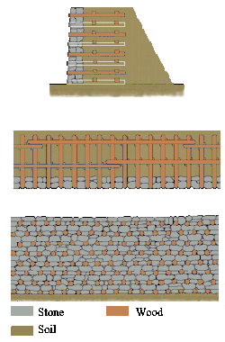 - Dacian Wall – inner and outer stone walls reinforced with inner horizontal timber tie beams.