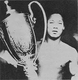 Musashiyama with the Emperor's Cup after winning the May 1931 tournament