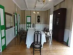 The manor house is a 2-story 60x50ft building built in 1845, the main indoors attraction of the museum and the reference point for all other structures. The ground floor was designed to be used for storage. The second floor contains three bedrooms and a living room. The eastern half of the manor house is made of brick and includes a courtyard, the kitchen, two more bedrooms and a bathroom. The manor house also has garden surrounded by a wrought iron-and-brick fence. The garden served two purposes: "Historically, this garden served as the formal entrance to the hacienda complex; however, it was most often used as a private family place."[21] The carriage house, stables, and a small caretaker's house are nearby.[22] In addition mule stables and caretaker's office are also part of the museum patrons can access.[23] Located opposite the manor house, is the hurricane shelter. It is a solid brick structure measuring 15 ft (4.6 m). x 25 ft (7.6 m), and built 3 ft (0.91 m). above ground. Its walls, floor and ceiling were made to withstand or dissipate the destructive tropical storms that are common in this region.[23]