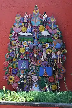 The museum was established as part of the acknowledgement in the latter 20th century that Mexico consists of various ethnicities and cultures. The term “culturas populares” (popular cultures) refers to indigenous peoples as well as those of different regions, and different socioeconomic levels.[1] Its primary function is to document, promote and foment creative activities in the various subcultures of Mexico in both rural and urban areas through exhibitions and other activities.[2] These activities include collections of art and other objects, photography, film, sound and documentation. The elements of these popular cultures are to be promoted as part of Mexico's national heritage. The main goal of the museum is not to form a large permanent collection but rather to stimulate the formation of museums and other institutions related to various topics.[1][3] The museum is a part of the Dirección General de Culturas Populares which is a subsidiary of the Consejo Nacional para la Cultura y las Artes .[4] The museum receives about 1.1 million visitors each year, who come to see its frequent temporary exhibitions and other events.[5]