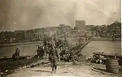 With the dispatch to the front of the entire cadet force and most of the teaching staff, the People's Commissar of the Soviet Navy issued Order No. 02255 on 1 November, disbanding the Black Sea Naval School. The remaining teaching staff were transferred to other naval educational institutions, and the surviving property of the school was sent to the Caspian Higher Naval School.[6] The cadets of the school were formed into the 76th Naval Rifle Brigade, commanded by the former head of the school, Captain 1st Rank Boris Apostoli. After being reformed and equipped at Mineralnye Vody, the brigade returned to Rostov-on-Don in January 1942. In March they were in heavy action around Matveyev Kurgan, and in July they were forced back across the Don River when the Germans captured the city.[7] The brigade continued to serve with the 56th Army in defensive and offensive operations throughout 1942 and into 1943, until March 1943 when it and the other naval rifle brigades were disbanded and the sailors were returned to the navy.[7] Of the 1,794 graduates of the school who served in the Soviet Armed Forces during the Second World War, thirteen were awarded the title of Hero of the Soviet Union during wartime, and two more in the post-war period. Another received the title of Hero of Socialist Labour, with five more receiving the title of Hero of the Russian Federation.[2]