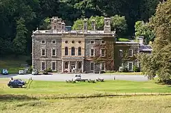 The current building was constructed between 1738 and 1757 for the Powell family, with the Shrewsbury architect Edward Haycock Sr. designing the stable block in the 1830s, and William Ritson Coultart designing the east wing and rear offices in 1841. The family occupied the house for some 200 years up until the last of the Powells, Margaret Powell, who died in 1951. At its peak the Nanteos estate comprised some 31,000 acres in 1800,[1] covering most of what is today Aberystwyth, and was the major employer of the county. The name derives from the Welsh for "brook" (nant) and "nightingale" (eos).[2]