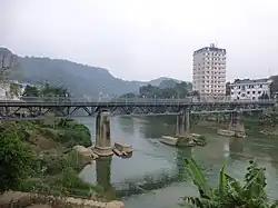 The Chinese portion of the Yunnan–Vietnam Railway was built partly along the Nanxi River valley from 1906 to 1910, linking the city of Kunming with the Vietnamese capital, Hanoi.[5] The mountainous terrain of the Nanxi River Valley posed special difficulties for the railway's construction; this, along with the endemic nature of malaria in the area, led to the deaths of at least 10,000 workers in the valley.[6][7][8] Today, the Nanxi River is known as a destination for white water rafting.