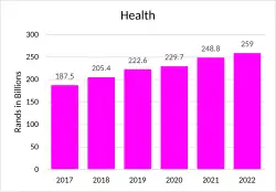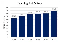 In 2021/22 the Western Cape Provincial government received a total budget of just under R 72.35 billion with 74% (R54.445 billion) of that in the form of "equitable shares" from the national government budget, 18% (R13.53 billion) in the form of "conditional grants" from national government, 4% in "financing", 3% from the provinces own receipts, and 1% from the provincial revenue fund in the form of tax receipts.[ 15] In 2019 the 17.1% of all South African taxpayers were located in the Western Cape; the province contributed 16.9% of the country's total taxable income thereby contributing to just under R 269.58 billion to the fiscus.[ 16]