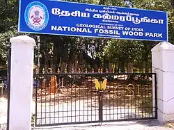 The National Fossil Wood Park, Tiruvakkarai is a notified National Geo-heritage Monument located in the Villupuram District in the Indian state of Tamil Nadu and is maintained by the Geological Survey of India.[1] The park was established in 1940[2] and is located 1 km east of Thiruvakkarai[3][4] village on the road between Tindivanam and Pondicherry.[5]