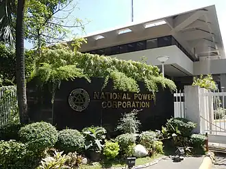The National Power Corporation (Filipino: Pambansang Korporasyon sa Elektrisidad, also known as NAPOCOR, NPC or National Power) is a Philippine government-owned and controlled corporation that is mandated to provide electricity to all rural areas of the Philippines by 2025 (known as "missionary electrification"), to manage water resources for power generation, and to optimize the use of other power generating assets.[1]