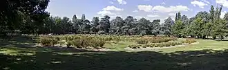 The National Rose Gardens are heritage-listed rose gardens located in Parkes, a suburb of Canberra, in the Australian Capital Territory of Australia. Conceived in 1926 and opened in 1933, they were Australia's first national gardening project and were planned as a physical expression of the principle of cooperation between the Commonwealth and the States. In the development of the Gardens, roses were contributed by all States in Australia. They were intended to provide an interest for all Australians in developing Canberra, the national capital, as a garden city. The Gardens demonstrate a distinctive early example of twentieth century public garden design in a formal style. In horticultural terms the Gardens have provided the opportunity to exhibit the best varieties of Australian grown and overseas roses in a favourable climate. Their location in front of the (then Provisional) Old Parliament House was planned to enhance the setting of the House. The Gardens are valued by visitors to Canberra as well as the local community for their aesthetic qualities.[1]