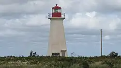 One notable feature of the Naufrage area is the Shipwreck Point Lighthouse. It was built in 1913 by the Anandale Lumber Company at a cost of $3,213.81[2] The original lighthouse was a square, two-storey structure that housed a fourth-order lens in its lantern room. The lower storeys provided living quarters for the lighthouse keeper and consisted of eight rooms.[2] The lighthouse was painted white below, while the lens room was painted red. The first lighthouse keeper was Francis (Frank) MacKinnon.[2] The lighthouse was 11.5m tall, and displayed a white flashing light.
