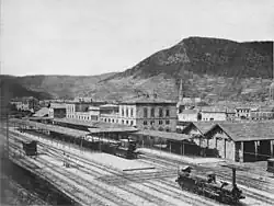 In 1875, the station became the site of a state telegraph office.[21] In 1887, a curve was opened connecting the line from Schifferstadt towards the line to Neustadt (Maximilian Railway); this meant that freight trains from the east no longer had to reverse in the station.[22][23] The station received ticket gates on 15 October 1906.[24]