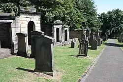 Although there is some reference to the burial ground being called "The Cemetery of the Admirals",[8] this appears both rare and misplaced as the burial ground has fewer admirals than most Edinburgh cemeteries, with only three named on monuments and an alleged further three unmarked. A high number of the gravestones moved from Old Calton Cemetery are noted as "tanners" and "leather workers" connecting to that area’s association with shoemaking.