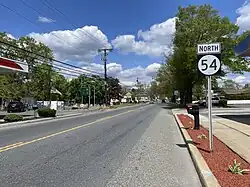 By 1927, what is now Route 54 was an unnumbered, unpaved road connecting Buena to Hammonton.[4] Route 54 was legislated on March 30, 1938, to run from US 30/Route 43 and US 206/Route 39 in Hammonton south along Lincoln Avenue to an intersection with Main Road in Landis Township, Cumberland County (now a part of Vineland).[1] The only portion of Route 54 that was taken over as a state highway was north of the US 40/Route 48 intersection in Buena.[5] The portion of Lincoln Avenue south of US 40 remained a county route called CR 25 in Cumberland County and CR 55 and CR 19 in Atlantic County.[6][7] This road is presently both Cumberland and Atlantic CRs 655 and a part of Atlantic CR 619.[8][9][10] In the 1953 New Jersey state highway renumbering, Route 54 was defined onto its current alignment between US 40 in Buena Vista and US 30/US 206 in Hammonton.[11][12] In the late 1960s, a freeway was proposed for the US 206/Route 54 corridor, running from US 30 in Hammonton south to Route 55 and the proposed Route 60 near Vineland and Millville.[13] The freeway between Vineland/Millville and Hammonton was to cost $47 million and was intended to provide a better route between the two areas than the existing two-lane roads. This proposed freeway was never built due to environmental and financial issues.[14]