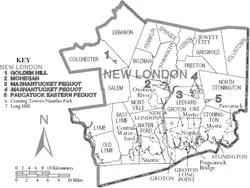 7. ^ "2020 CENSUS - SCHOOL DISTRICT REFERENCE MAP: New London County, CT" (PDF). U.S. Census Bureau. Archived (PDF) from the original on October 9, 2022. Retrieved July 22, 2022. - Text list