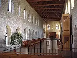 The Abbey has been remodeled several times. One of the most notable projects was the completion of the Abbey's chapel. Because of financial concerns, the Abbey's chapel was not completed as originally envisioned by the architect. It had originally been on the second floor of the east wing, then was moved in 1920 to the second floor of the north wing. In the 1970s, the abbey was able to convert the entire north wing of the Abbey into a permanent chapel. The chapel features a very simple and very elegant design. Red oak is used in the choir stalls, doors, Eucharistic chapel, and other furnishings. The altar was made of granite that had been quarried in Minnesota,[4] and it weighs five tons. Designed by Architect Willoughby Marshall, Inc, with construction supervised by Twin Cities-based Hammel, Green and Abrahamson, the new chapel received a prestigious national Honor Award (1977) from the American Institute of Architects.[5]