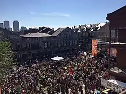Visitors enjoying a public event hosted by the New Orleans Jazz Museum. View of Barracks Street courtyard.
