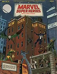 After acquiring the license to produce a role-playing game based on the Marvel Comics universe, TSR first published Marvel Super Heroes in 1984, and followed with many adventures and supplements. One of those, published in 1985, was MHAC6 New York, New York, written by Kate Novak and Jeff Grubb, with a cover by Ron Frenz, Josef Rubinstein, and Jeff Butler as two 16-page books with two outer folders.[2]