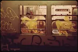 Bottom: A vandalised Manhattan subway car, 1973