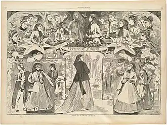 Opening Day for a fashion show in New York, seen in Harper's Bazaar in 1868.