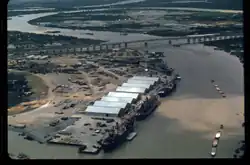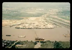 With the increased movement of U.S. troops into the Saigon area to support the Vietnam War, the deep-draft facilities there proved completely inadequate. However, a plan was already underway to construct a new port on the Saigon River upstream from the city. This site, called Newport, was in a sparsely populated area adjacent to Highway 1 and the bridge connecting Saigon with the newly developing Long Binh Post some 20 miles (32 km) northeast of Saigon. This massive project financed by the Army was constructed by RMK-BRJ.[1]: 59