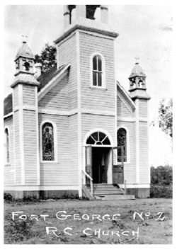 By 1911, Nicolas Coccola was visiting the First Nations Lheidli T'enneh village at Fort George, later Prince George, regularly and he began to grow concerned over the bad influences of the railway construction workers and settlers in the nearby townsite of South Fort George, where there was a large licensed hotel. The First Nations village was a valuable property, as it had been decided that the railway was going to pass through Fort George. Several different concerns tried to purchase the property, among them Charles Vance Millar of the BC Express Company. Eventually the railway succeeded in negotiating for the 1,366-acre (5.53 km2) property and with Nicolas Coccola as the band's spokesman, the village was sold for $125,000 and a new reservation was built 16 miles (26 km) north on the Fraser River. By the summer of 1913, the old First Nations village was burned and only the church was left standing.[1]: 168
