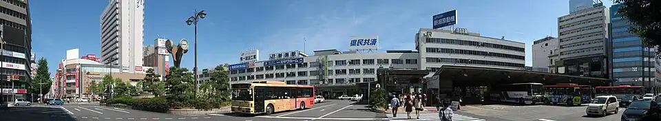 Niigata Station (新潟駅, Niigata-eki) is a major railway station in Hanazono 1-chome, Chūō-ku, Niigata, Japan, operated by East Japan Railway Company (JR East).[1] The station is in the center of Niigata City, the largest city on the Sea of Japan coast in Honshu. It forms the central station for the railway infrastructure along the Sea of Japan coast, and is also the terminus of the Jōetsu Shinkansen high-speed line from Tokyo. Niigata station has the largest passenger figure on the west coast of Honshu.