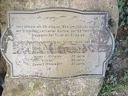Small Memorial Stone for the killed crew of a shot-down Lancaster of 83 (Pathfinder) Squadron. in Heusenstamm, Germany
