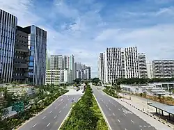 The North-East Region is predominantly a residential area. Like other regions outside the city centre, towns in the North-East Region are largely made up of high-density, high-rise public housing, provided by the Housing and Development Board (HDB).[37] HDB estates make up 78.72% of households in the region.[6] Each of these housing developments are designed for self-sufficiency, with schools, hospitals, parks, sports facilities, shopping malls and other amenities easily available to residents.[37] The North-East Region experiences continual development of housing and other public facilities. New housing in Ang Mo Kio, Hougang and Serangoon is being developed, along with new transport options, parks and other amenities.[38] In recent years, the HDB has also developed more of a focus on sustainability and incorporating ecological considerations into town planning.[39] The town of Punggol was branded as the “first eco-town”, with more greenery incorporated into the area, along with the development of the Punggol Promenade and Waterway.[39]