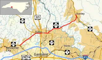 North Carolina Highway 275 (NC 275) is a primary state highway in the U.S. state of North Carolina. It connects the cities of Bessemer City, Dallas, and Stanley.