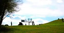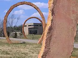 The museum's contemporary art program extends into the landscape surrounding the museum, where artists have created both temporary and permanent site-specific works of art in the Museum Park. As of 2010, art on view in the Park includes works by Thomas Sayre, Vollis Simpson, Martha Jackson-Jarvis, Ledelle Moe and a camera obscura entitled Cloud Chamber for the Trees and Sky by Chris Drury. Other outdoor sculptures—Ronald Bladen's Three Elements, Henry Moore's Large Spindle Piece and Large Standing Figure: Knife Edge—are installed in the gardens surrounding West Building. Picture This, part of the museum's amphitheater, is a monumental work of art designed by artist Barbara Kruger in collaboration with architects and landscape architects.[13][14]