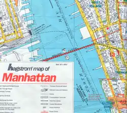 Hagstrom Maps, formerly the leading mapmaker in the New York metropolitan area and known for occasional quirky and anachronistic names, features, and artifacts on their maps, has labeled all or part of the Hudson adjacent to Manhattan as "North River" on several of its products. For instance, on a 1997 Hagstrom Map of Manhattan, the stretch of river between Hudson County, New Jersey, and Lower Manhattan, roughly corresponding to the location of the North River piers, was labeled "North River", with the label "Hudson River" used above Midtown Manhattan.