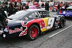 Chase Elliott's Pro All Star Series car at North Wilkesboro Speedway in 2010. Elliott won the first race under the short-lived Alton McBride Jr.-led lease.