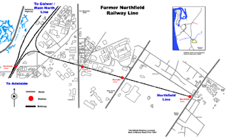 The Northfield railway line (formerly Stockade railway line) was a railway line in northern Adelaide running Dry Creek and Northfield. The line branched east from the Gawler railway line just north of Dry Creek station. In earlier years, it saw mixed freight including livestock in and meat out of the Gepps Cross abattoirs and sale yards. In its later years, it was operated as part of the metropolitan passenger rail network and served three stations: Cavan, Pooraka, and Northfield.