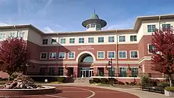 Brightwater officially opened in the 8th Street Market district of Bentonville within a former Tyson Foods chicken processing plant, allowing the enrollment to grow from a few dozen students to a maximum of 350.[11]