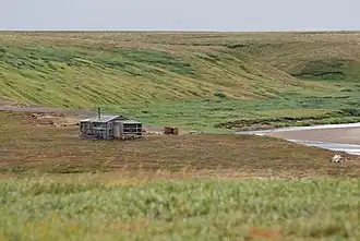 The lowland tundra features extensive inland wetlands and meadows, with characteristic shrub-moss-lichen floral communities.[2] A characteristic of the ecoregion is that the coastal meadows reach far inland.