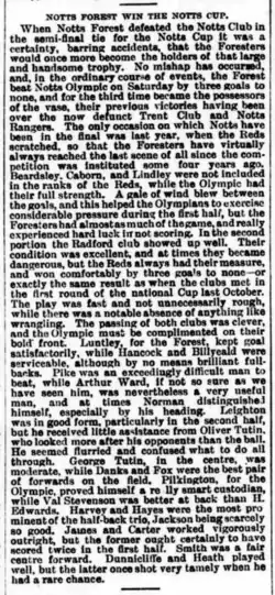 - ^ "Notts Olympic v Trent". Nottingham Evening Post: 3. 25 January 1884.