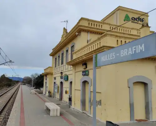 Nulles-Bràfim Station is a railway station located in the municipality of Nulles, in the Alt Camp region of Catalonia, Spain. The station is situated on the BarcelonaVilanovaValls railway line and is served by line R13 of the Rodalies de Catalunya regional rail system, operated by Renfe Operadora.