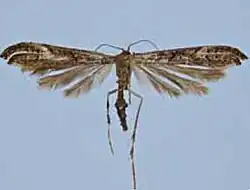 1. ^ Beccaloni, G.; Scoble, M.; Kitching, I.; Simonsen, T.; Robinson, G.; Pitkin, B.; Hine, A.; Lyal, C., eds. (2003). "​Pterophorus trachyphloeus​". The Global Lepidoptera Names Index. Natural History Museum. Retrieved May 11, 2018.
