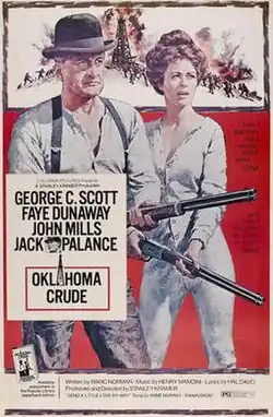 Oklahoma Crude is a 1973 American comedy-drama western film directed by Stanley Kramer in Panavision. It stars George C. Scott, Faye Dunaway, John Mills and Jack Palance. It was entered into the 8th Moscow International Film Festival where Kramer won the Golden Prize for Direction.[2] The song "Send a Little Love My Way", sung by Anne Murray, was featured in the film and was nominated for a Golden Globe Award for Best Original Song in 1973.[3]