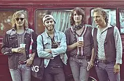 Okta Logue are a four-piece rock band based in Griesheim, Hessen Germany. The members consist of Benno Herz (bassist/vocalist), his brother Robert Herz (drums), Philip Meloi (lead guitarist), and Max Schneider (organ, synthesizers). Their style is often referred to as being influenced by '60s psychedelic rock bands mixed with modern indie rock elements.[1]