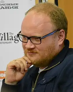 He opposed the Russian invasion of Ukraine in 2022.[31] Despite taking a strong anti-war stance and describing the actions of the Russian authorities as cannibalistic toward Ukraine and suicidal for Russia itself, he was included by Alexei Navalny's associates on a list of about 6,000 Russian "bribetakers and warmongers" who deserve to fall under international sanctions because of the Russian invasion of Ukraine. Kashin himself linked his inclusion on the list to the fact that he "has repeatedly criticized people who are now speaking on behalf of Navalny."[32][33][34][35]