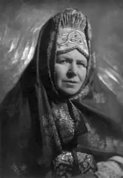 Olga Erastovna Ozarovskaya (Russian: О́льга Эра́стовна Озаро́вская; 1874 – 1933) was a Russian folklorist, storyteller, performer, writer, and an archivist of fairy tales.[2] She published a few Northern Russian folklore collection books.[3] Additionally she was the first female civil servant, and the first women to do major scientific institution work within the Russian Empire.[4][5] She worked with Russian folklore performer Mariya Krivopolenova.