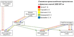 There are competing hypotheses on how the Olgovichi of Chernigov are related to the princes of Bryansk.