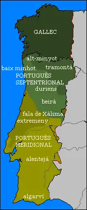 Oliventine Portuguese[1] (also known as Portuguese from Olivença)[2] is the dialectal variety of the Portuguese language natively spoken in the disputed municipalities of Olivença and [[Táliga]. Currently, the Portuguese of Olivença and Táliga is not recognized by Spain, which has administered this territory since the War of the Oranges in 1801. Portugal, however, does not recognize Spanish sovereignty over the region and claims it as its own.[3][4]