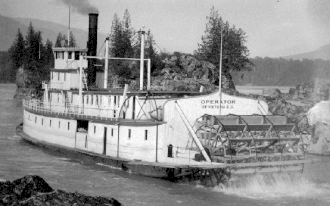 The Operator began her work on the Skeena River in 1909 under the command of Captain "Con" Myers. She and the other four Foley, Welch and Stewart sternwheelers had their work cut out for them. The construction of the railway from Prince Rupert to Hazelton was one of the most difficult sections of track that would ever be laid in North America. This 186-mile stretch would take nearly four years to build and would employ thousands of workers.
