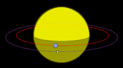 (The second equals sign ignores libration.) This reflects orbital periods for Styx, Nix, and Hydra, respectively, that are close to a ratio of 18:22:33 (or, in terms of the near resonances with Charon's period, 3+3/11:4:6; see below); the respective ratio of orbits is 11:9:6. Based on the ratios of synodic periods, there are 5 conjunctions of Styx and Hydra and 3 conjunctions of Nix and Hydra for every 2 conjunctions of Styx and Nix.[17][31] As with the Io-Europa-Ganymede resonance, triple conjunctions are forbidden. librates about 180° with an amplitude of at least 10°, which means that when Styx and Nix are in conjunction, Hydra can be 5° away from the point opposite Pluto, and when Nix and Hydra are in conjunction Styx can be more than 3° away from the point opposite.[17]