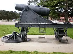 In September 1899, US forces attacked the battery at Subic Bay, where shells from the USS Charleston knocked the Ordóñez gun in the battery out of action.[10] William Randolph Hearst acquired this gun and presented it to the City of San Francisco where it was on display at Columbia Square Park until 1973, when it was moved to the Main Post of the Presidio of San Francisco.
