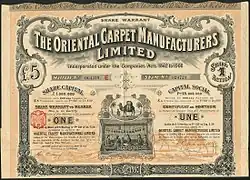 Stock certificate of Oriental Carpet Manufacturers Ltd., 1912.